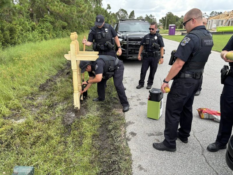 NORTH PORT, Fla. (WFLA) — In a commendable act of community service, North Port police officers stepped in when two residents discovered their mailboxes had been vandalized overnight. The incident occurred on Saturday along the 7800 block of Meroni Boulevard, where the police responded to separate hit-and-run incidents.